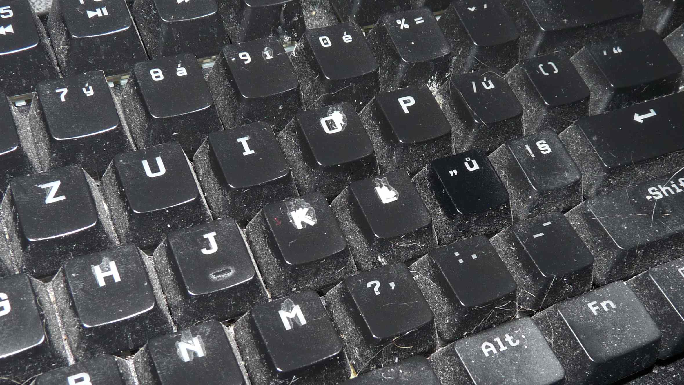 Na fotce ale vypadá mnohem hůře než ve skutečnosti. Plošky kláves jsou OK, prach je mezi nimi..