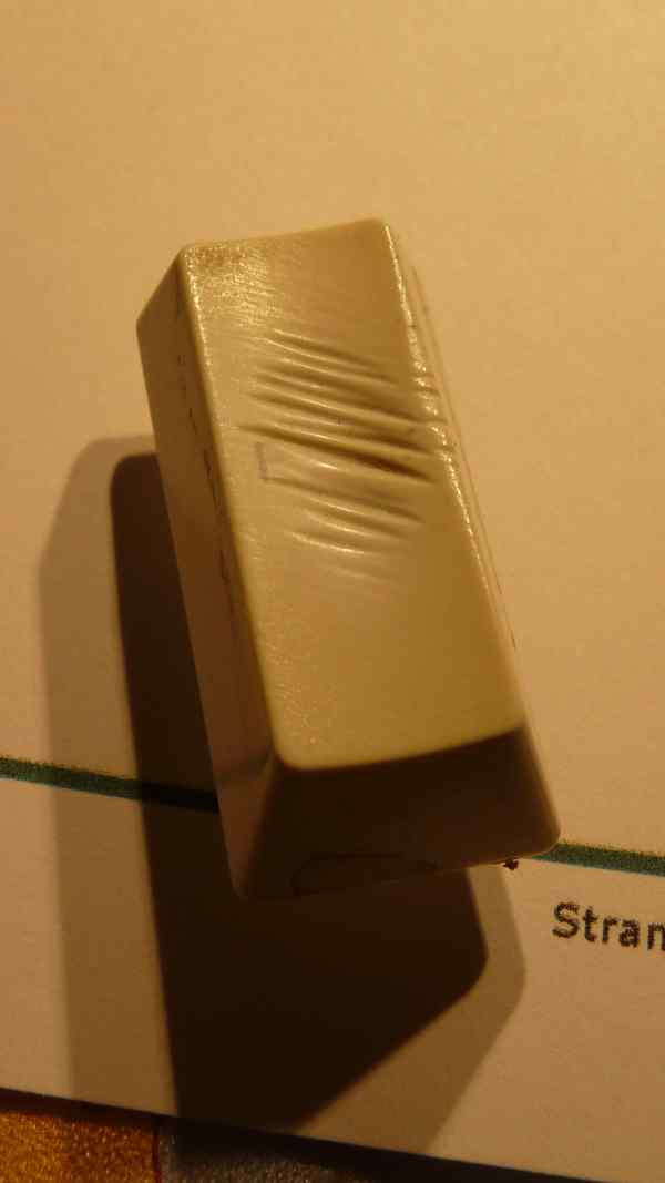 Mám dojem, že kdysi byly jednotlivé klávesy ze dvou dílů, zvlášť "tělo" klapky a zvlášť samotné písmenko (v jiné barvě).