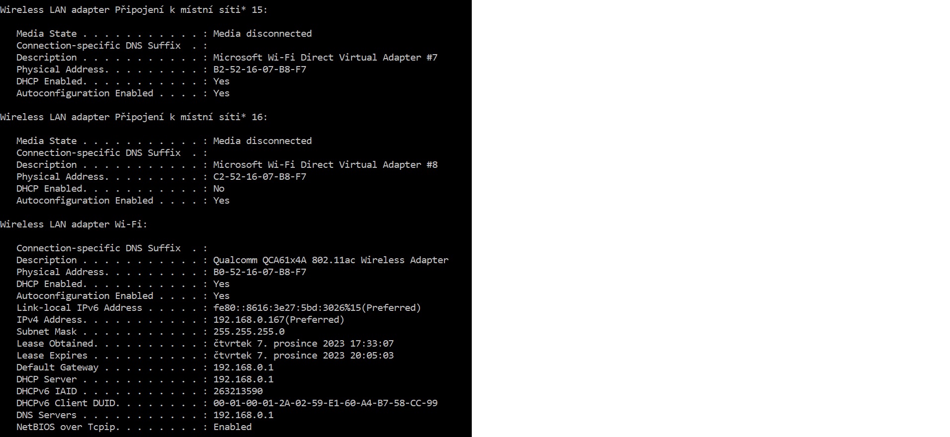 Dej sem výpis příkazu ipconfig /all