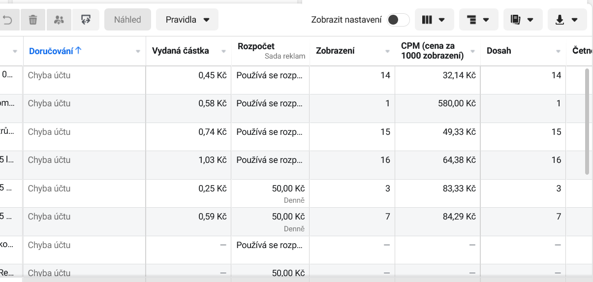 Facebook přestal zobrazovat reklamu,píše to chyba učtu