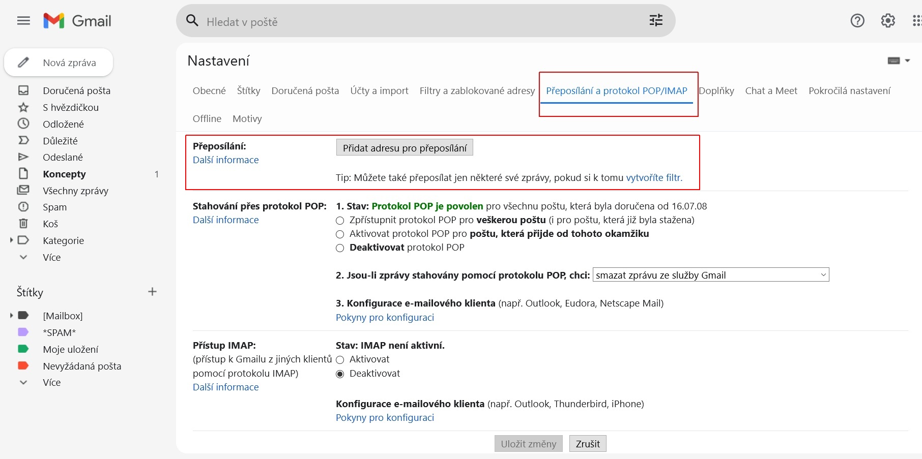A to nastavení účtu a přeposílání jsi si už zkontroloval nebo to stále ignoruješ?