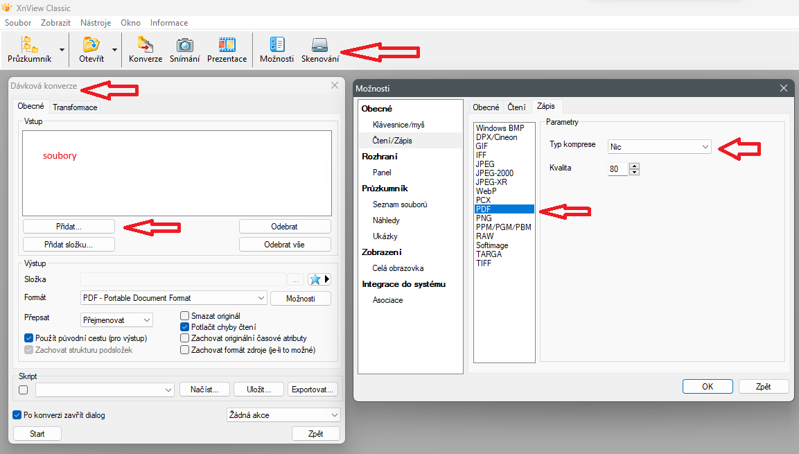 Na sken používám XnViev Classic a v něm to převedu do pdf hromadně