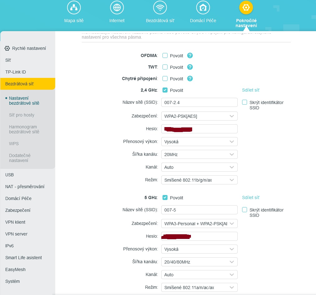 Ne na 20/40 MHz jak mám teď, ale pouze na 20 MHz. Neovlivní to ovšem rychlost a stabilitu připojení pro zařízení využívající 5 GHz připojení (5G)? Výhoda je, že pro 5G se nastavuje šířka kanálu zvlášť, tam mám 20/40/80