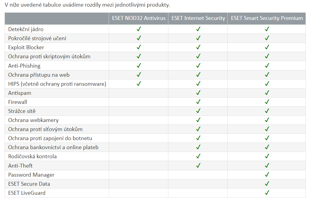 Koumám, jakou verzi zvolit.(rozdíly mezi produkty jsou v příloze) Jediná věc, kterou bych fakt využil u ESET Internet Security je Firewall. Vše ostatní je tam pro mě spíše zbytečné.