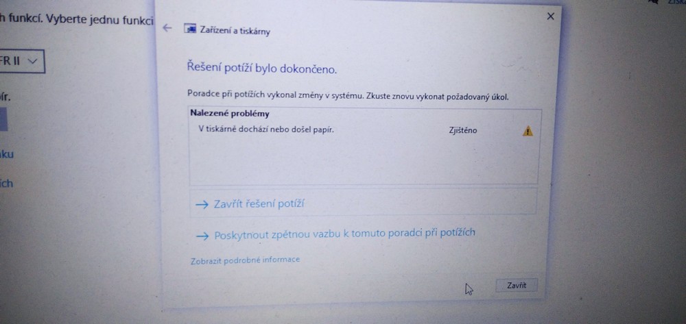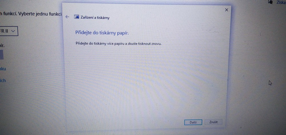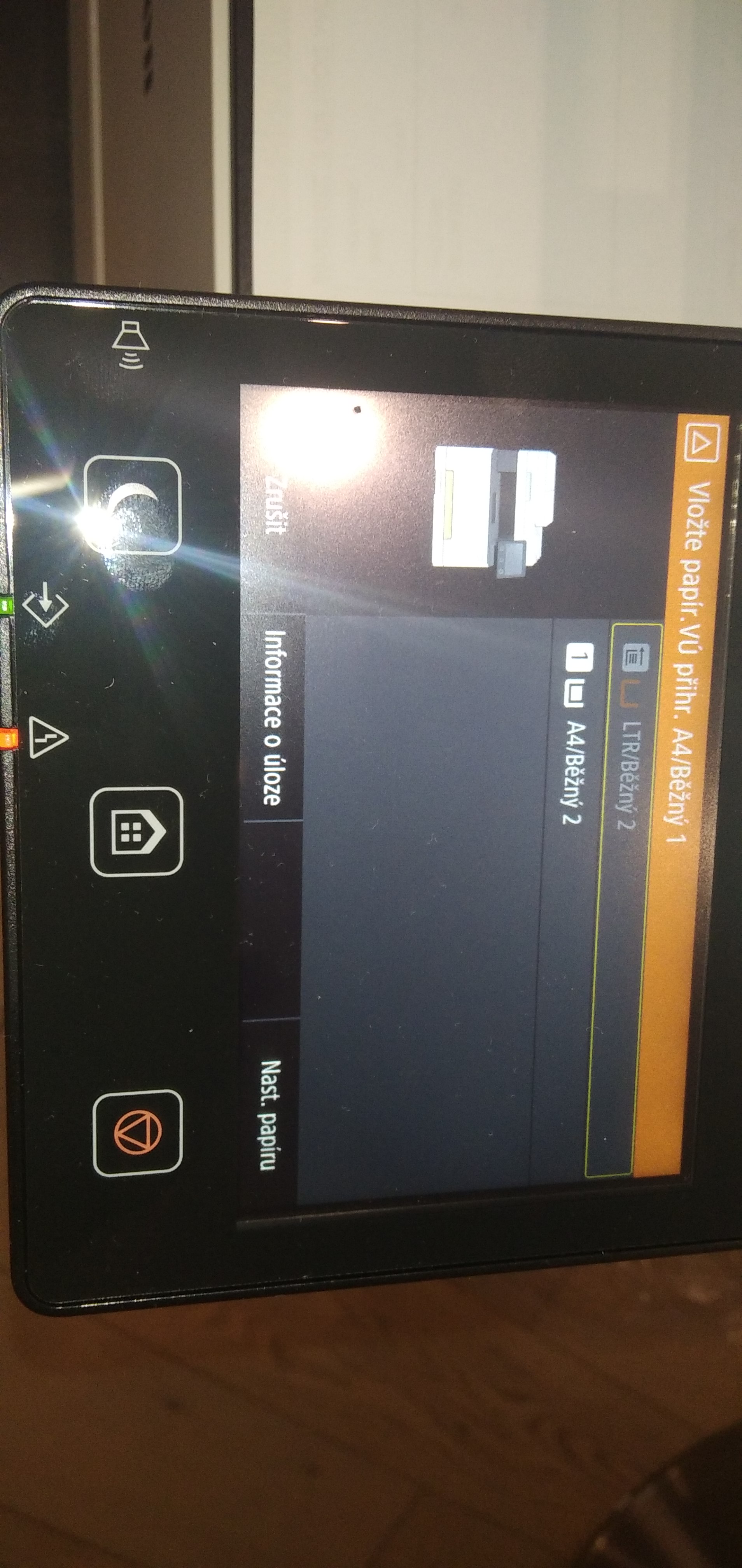 tak už to asi mám.Musí být nastavený ten papír 1 tedy nejslabší.Jinak když je tam jiný ,tak to háže chybu.díky
