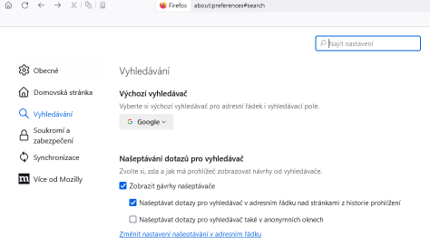 Máš ve FF nastavený výchozí vyhledávač Google?