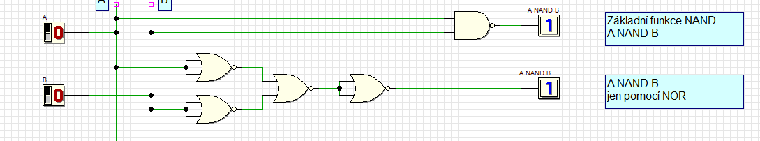 nevím jestli to sem patří, ale za zkoušku nic nedám. Dostal jsem za úkol vytvořit stejný výstup jako A nand B jen pomocí nor funkce viz obrázek. To jsem sice splnil díky tomu, že jsem se v tom trochu hrá a patlal. Ale chtěl bych se zeptat jestli existuje nějaké pravidlo nebo vysvětlení jak bych si to mohl zapamatovat a ne proste zkoušet nějak než mi to nevyjde. Díky