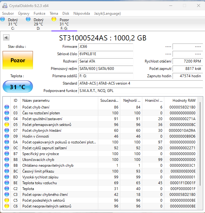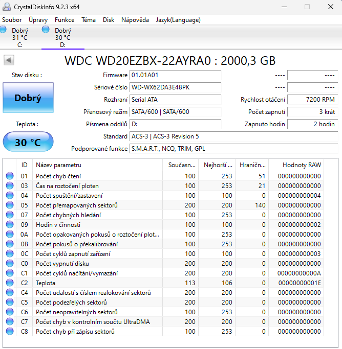 hodnoty ostatních sloupců tě netrápí, s různými řadami disků výroci mění jejich vyčíslení, neřeším je. místo toho si i v jiných diagnostických sw oblíbíš jedině živá "raw data".