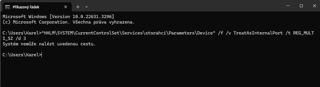 Podle tohoto návodu se mi to nepodařilo, objevuje se hláška, že systém nenalezl cestu. (Mohu doplnit přesné znění pokud je to potřeba.)