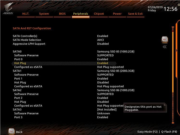 Taky zkontrolovat v biosu (Advanced/SATA Configuration) jestli je u příslušného portu nastaveno Hot Plug na Disabled.