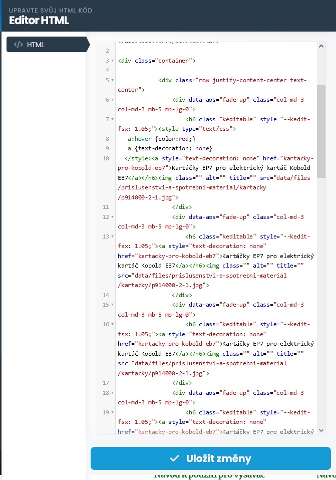 Kam ten kód vkládáš? Dáš v daném bloku, který chceš upravovat - nastavení, </> HTML, a pole s HTML kódy jednoduše upravuješ? Děláš to také tak, ne? Jinde to snad ani upravovat nejde, ne?