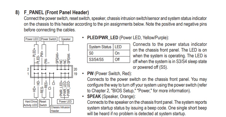 tvoja doska dáva cez power led 2 stavy zapnutá alebo vypnutá. Takže buď to strkáš inde, alebo jej "preskakuje". Chybové stavy sa štandardne posielajú cez speaker. Menej dôležité zobrazí pri POSTe. Inak mám tiež Gigabajtku a powerled mám červenú