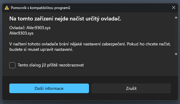 Chyba s ovladačem Aver9303.sys je způsobena tím, že Windows 11 blokuje jeho načtení kvůli nastavení zabezpečení – konkrétně kvůli aktivní funkci „Integrita paměti“ (Memory Integrity).