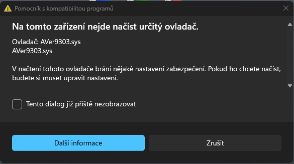 Pak at ten soubor AVer9303.sys ktery je na tom obrazku co prilozil "obrazku C1" zkratka rucne zkopiroje do systemove slozky C:\Windows\System32\drivers\
