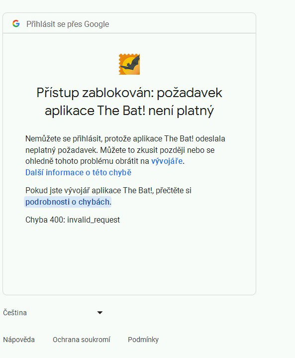 - The Bat! v9.1.18.1 (32bit) pod Windows XP SP3 nainstalovat lze, funguje, ale ke Gmailu se nelze přihlásit; na základě návodu viz 7799 jsem The Bat! v9.1.18.1 nastavil, ale nelze se připojit, resp. nelze ověřit prostřednictvím 0Auth2.0 a příkládám obrázky;