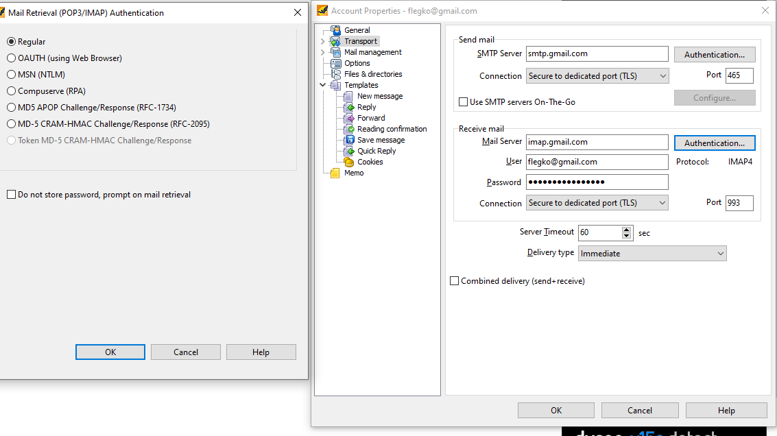 Samozřejmě jsem uvedené nastavení zkoušel. Nu což, tobě "regular" funguje, mně ale nikoliv, proč netuším, možná za to může "něco" v hlouby nastavení Gmailu; dodám, že prakticky používám výchozí nastavení Gmialu, žádné dvoufázové ověřování a podobné pičoviny.