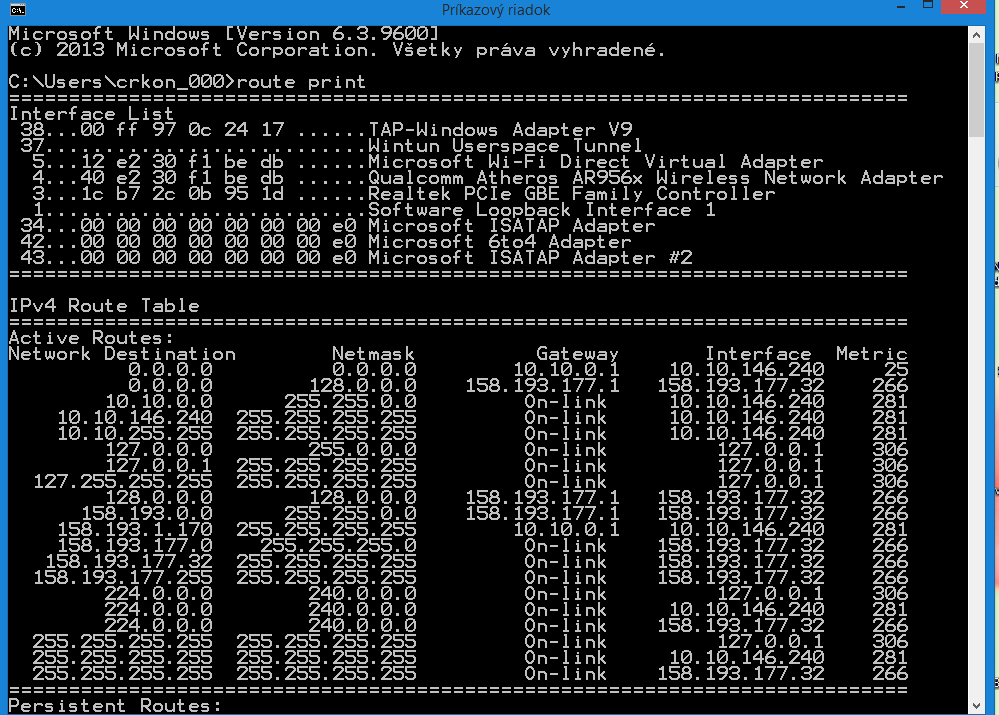 Toto je vypis u mna, ked som pripojeny na openvpn serveri. Rozsah 89 je moj domaci a 87 mi priradil openvpn server.