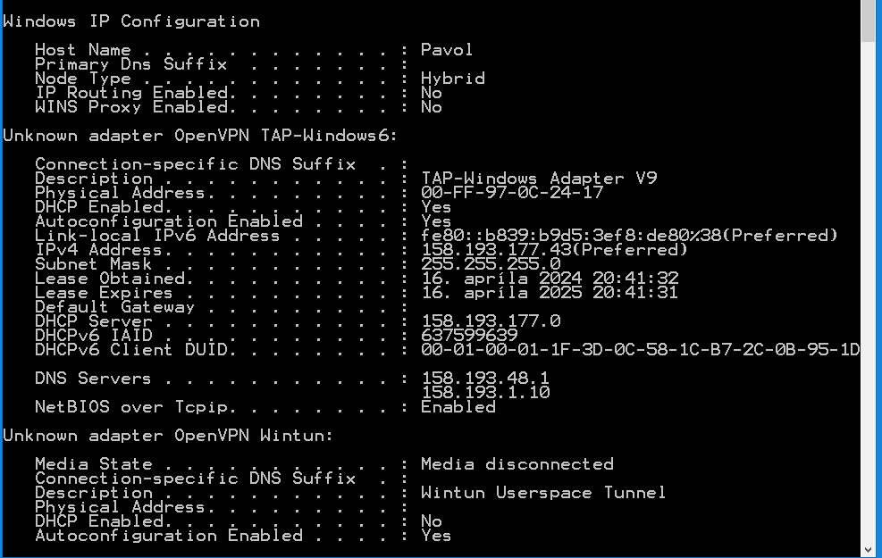 ano na mobile tiez cez openvpn , tu posielam ten ipconfig