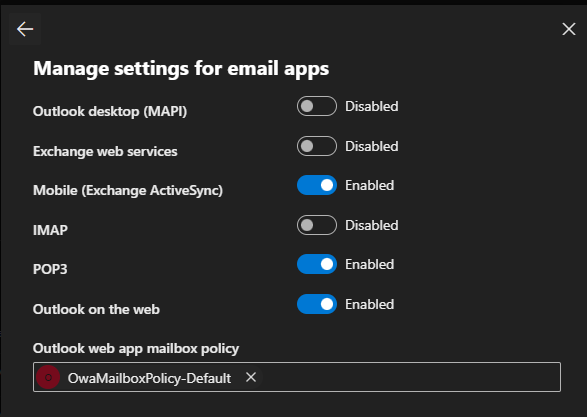 Tak už jsem přišel na to, kde je problém. Je třeba to povolit, samozřejmě ale v Exchange Admin Center, kde je navíc možnost Manage email apps settings.