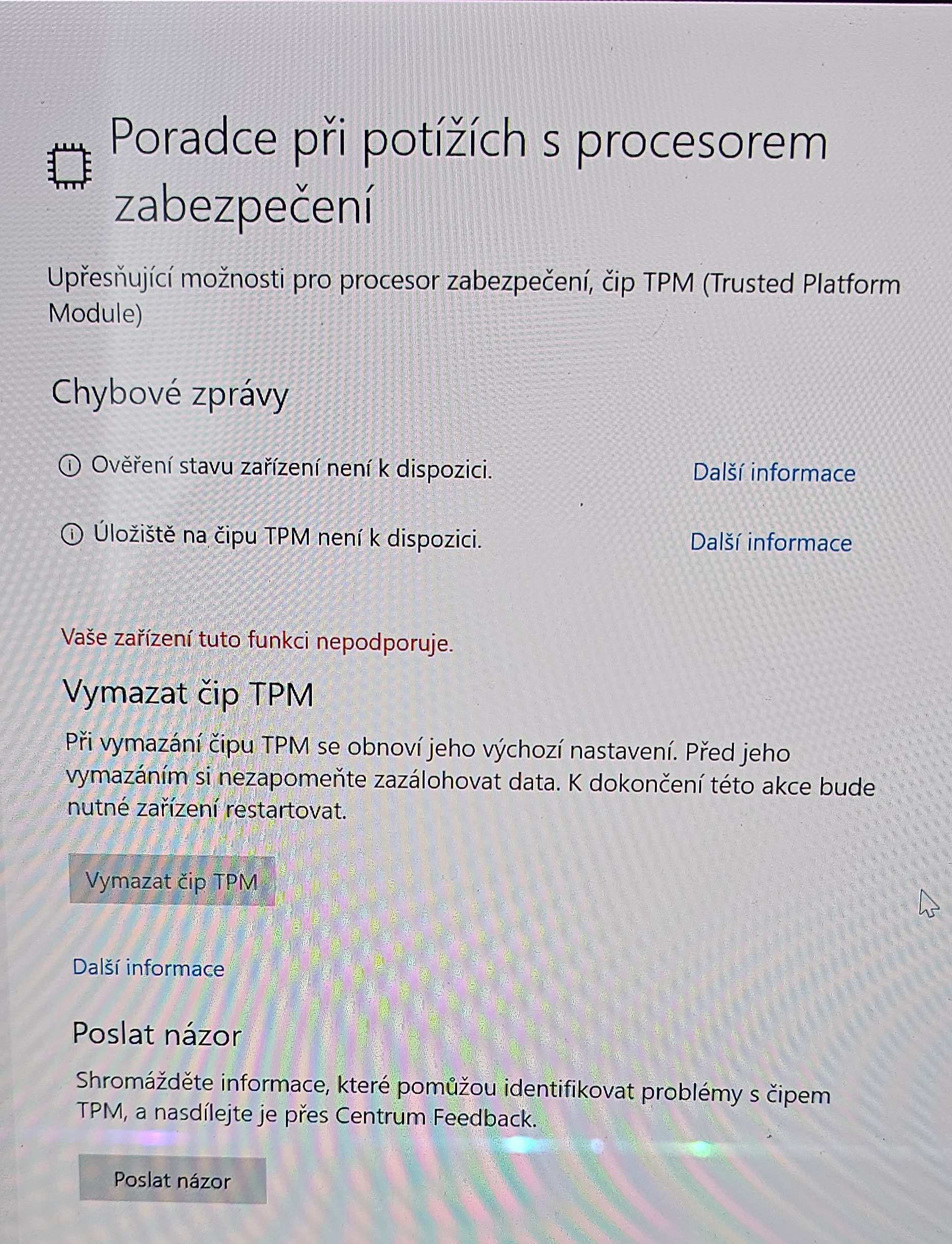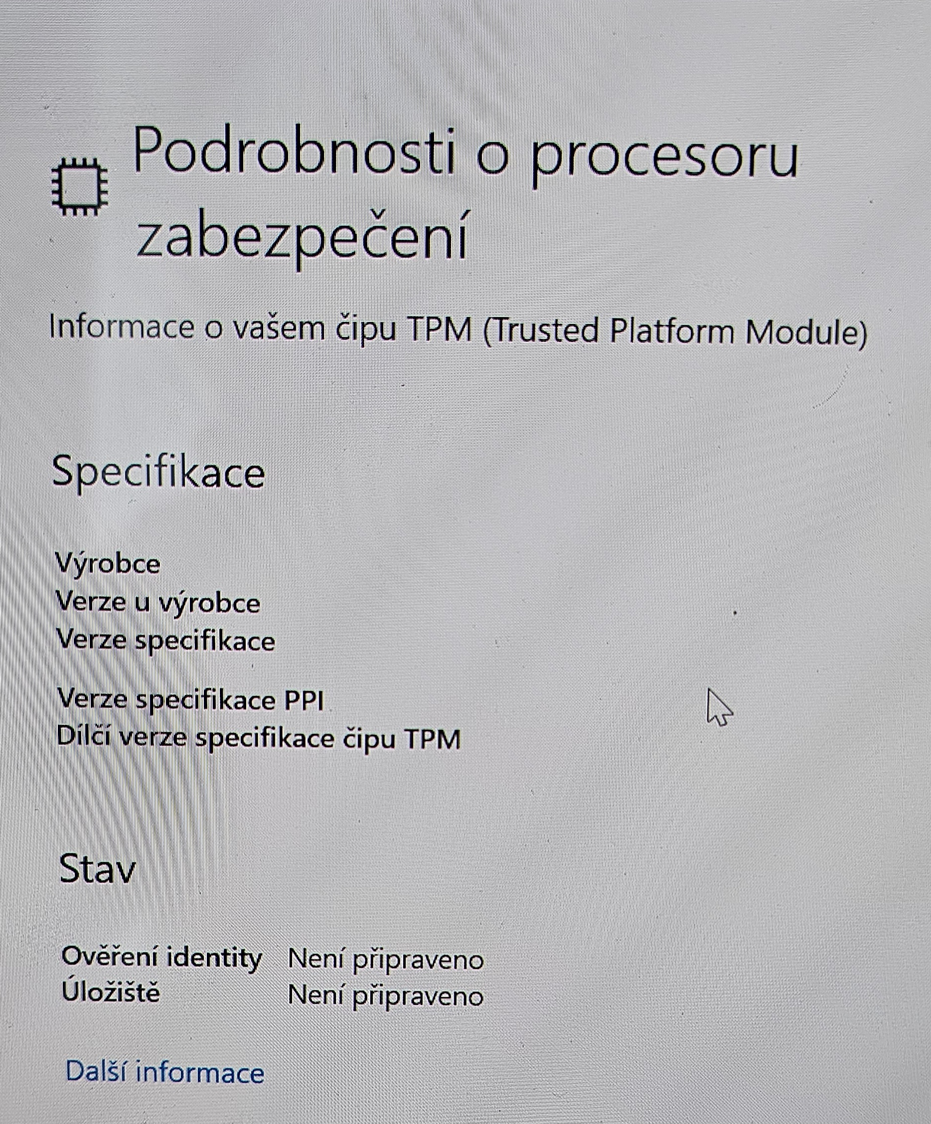 Pluton šel pouze Enable nebo Disable. Změna nenastala žádná i po povolení. Když zkusím i vyhledat TP… nový