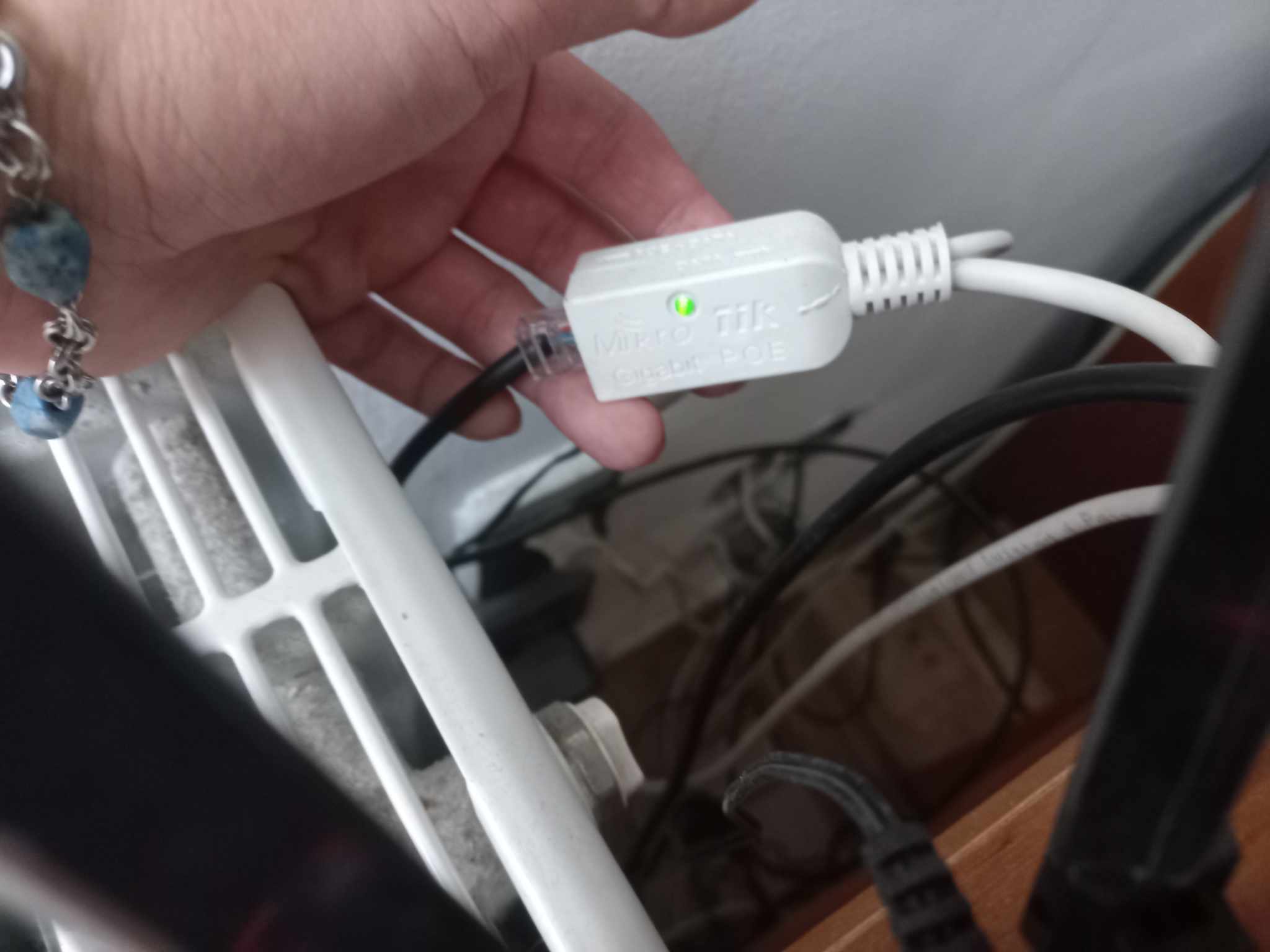 Na střeše je kulatý vysílač(vypadá jako satelit) -> ten vede dolů kabelem do routeru(mikrotit poe).…