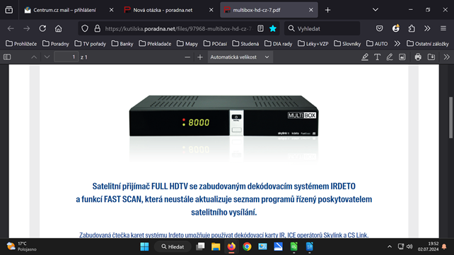 máme Satelitní přijímač FULL HDTV se zabudovaným dekódovacím systémem IRDETO