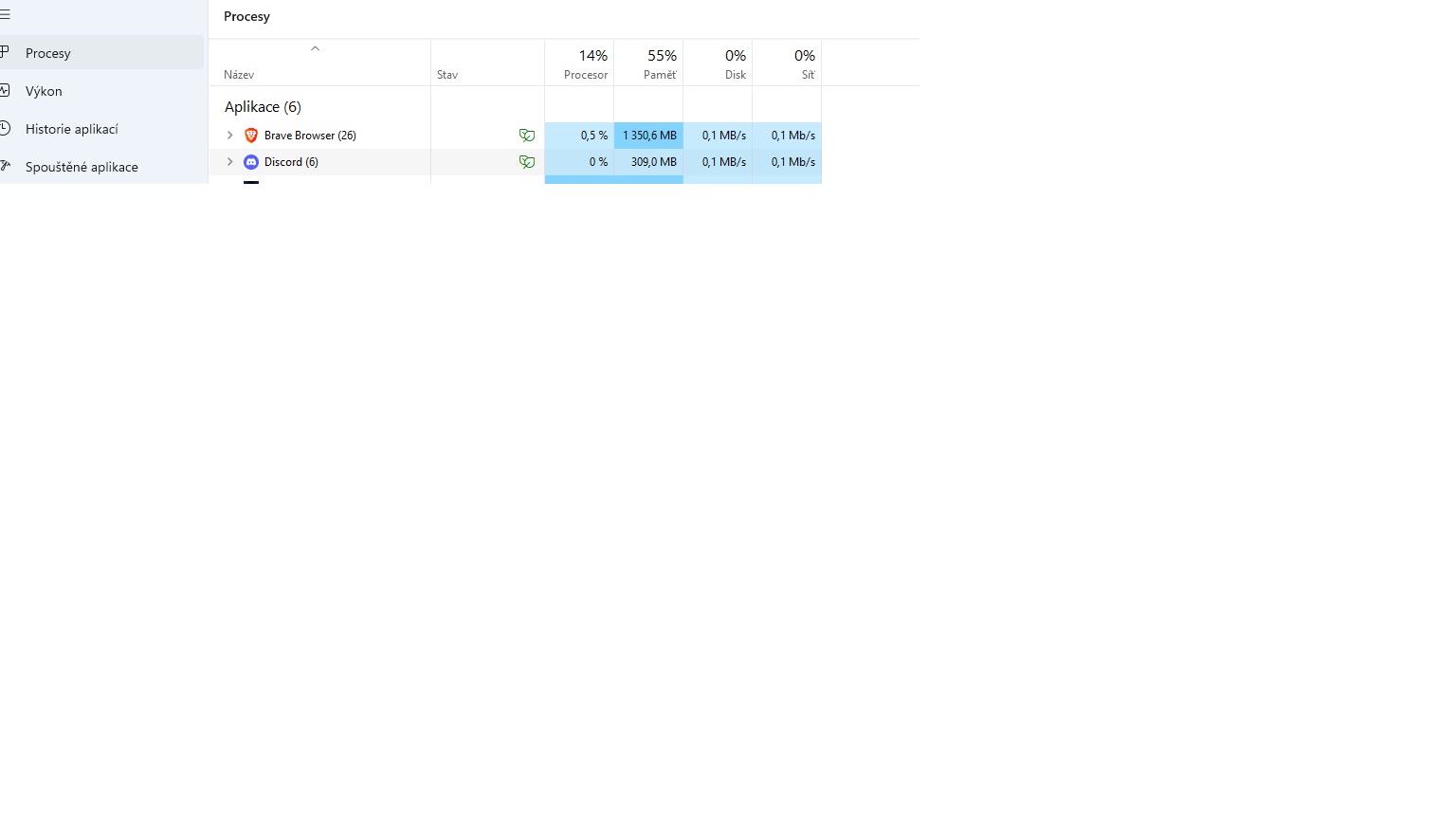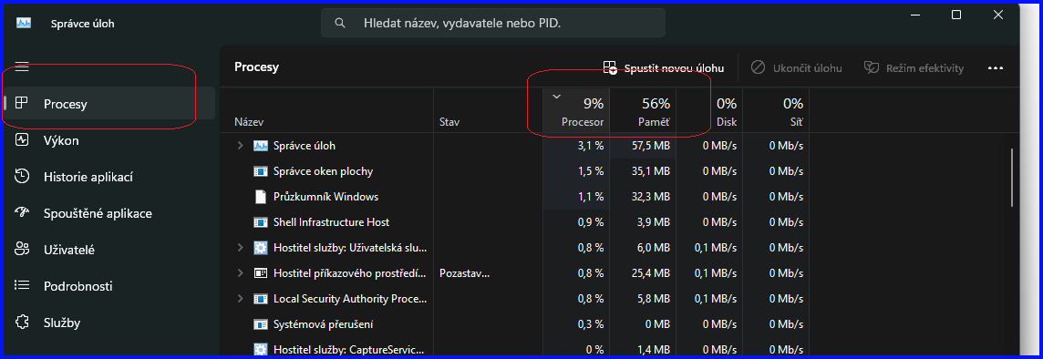 Spíše procesy, ať je vidět co to případně zatíží