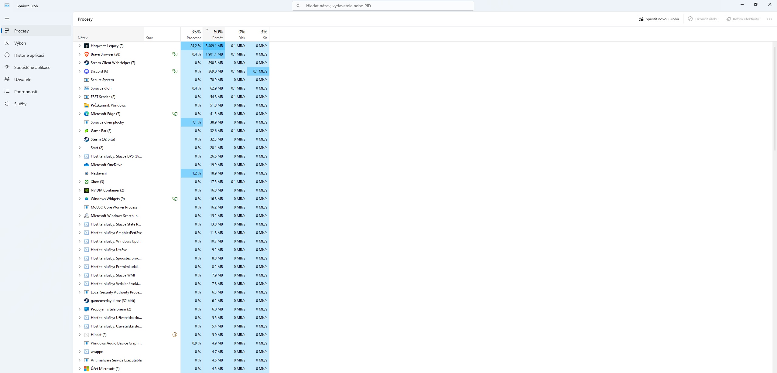 windowsí správce úloh je od w8+ nepřehledný, používám raději ms process explorer.