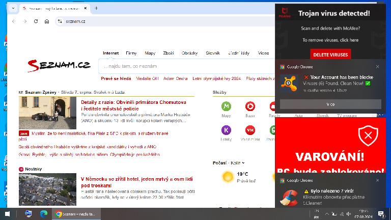 Na cosi jsem kliknul na facebooku a do počítače se mi cosi dostalo a na pravé straně obrazovky se mi zobrazují hlášení že počítač je zavirovaný.