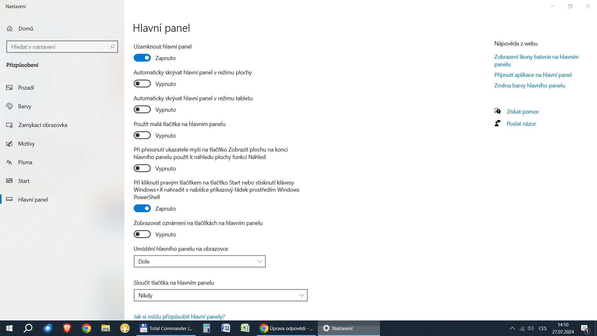 Díky za radu, avšak panel úloh mám zamknutý od nepaměti a nemá to na to vliv, navíc jsem si na zkoušku zapnul oznámení na tlačítka a už ho nemohu vypnout - viz obrázek.