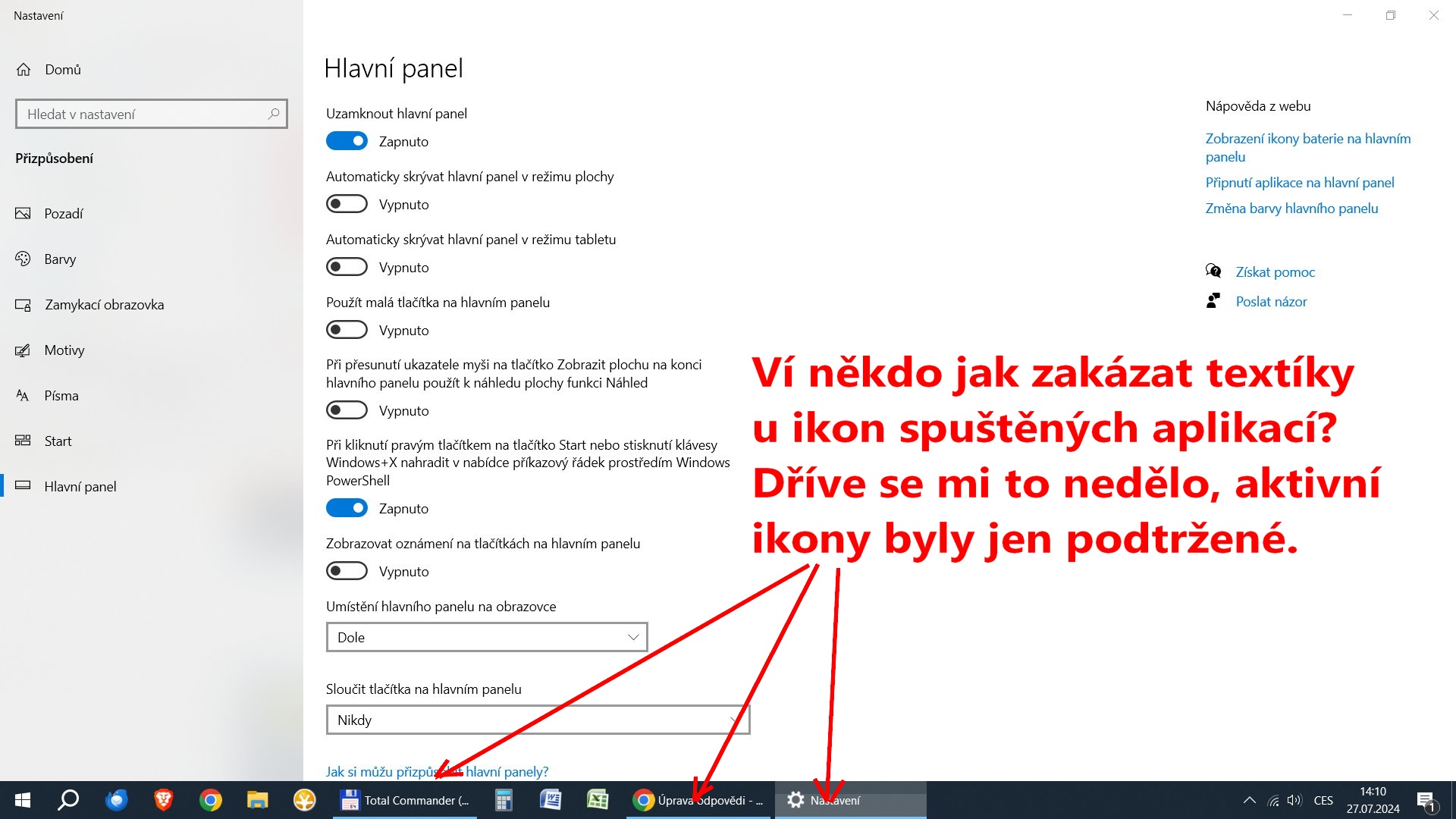 Hlavní panel W10 (původní otázka - proč se to stalo a jak to vrátit)