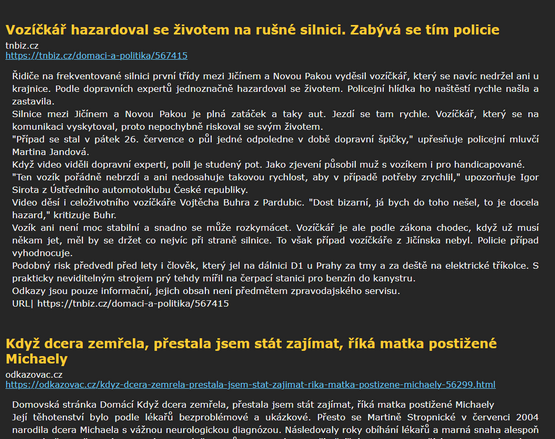 Ahoj, denně dělám pro helpnet.cz monitoring médií. To mi přijde tak 250 článků v *.xml a já z nich vybíráím 10 tématicky vhodných na Helpnet.