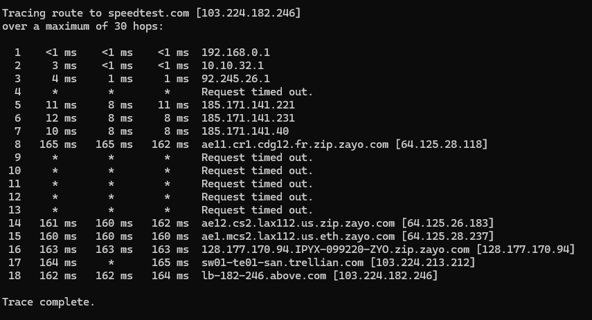 Speed test ti rovno dáva server ktorý je najbližšie u teba, ten tracert je keď mám 5000 ping v hrách inak normálne mám u všetkých hopu Max 30-40ms ping
