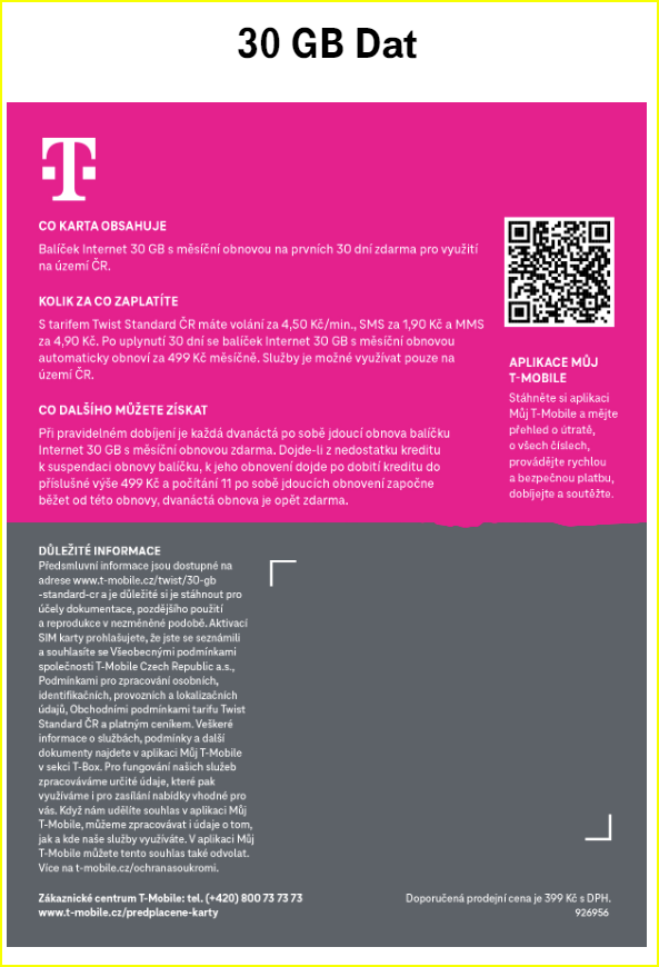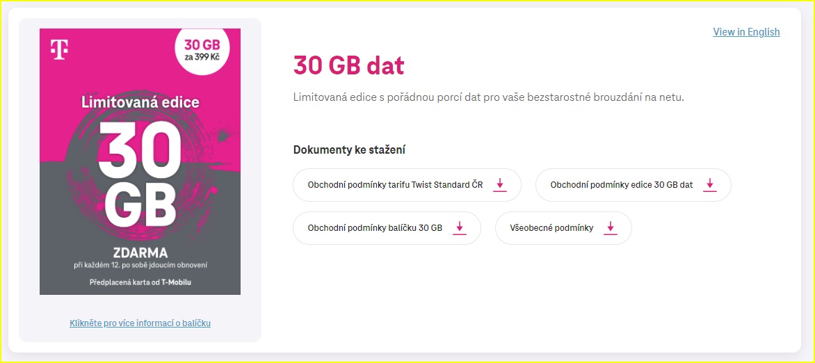 Jak už jsem psal, tak nevím jaká je možná kombinace s daty navíc, myšleno ten tarif 30GB