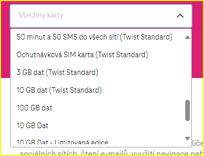 Ten co jsi vybral, má ten základ 10GB+něco za SMS a volání, je to Twist, gatis to tam nemá jako tarify neomezeně, to je snad jasný