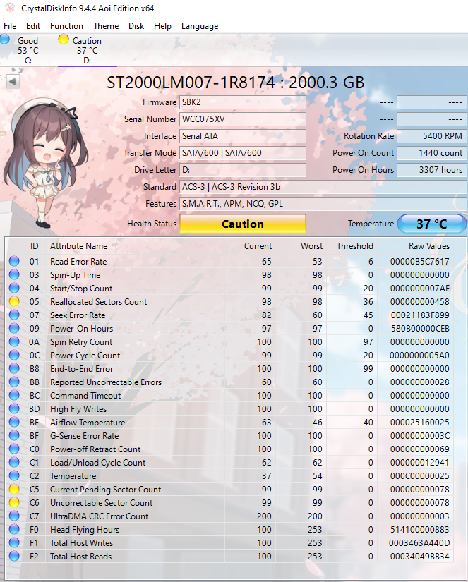 Smart hlásí chybné sektory na 2TB disku. Viz screen - https://pc.poradna.net/files/99024-smartcdi-png