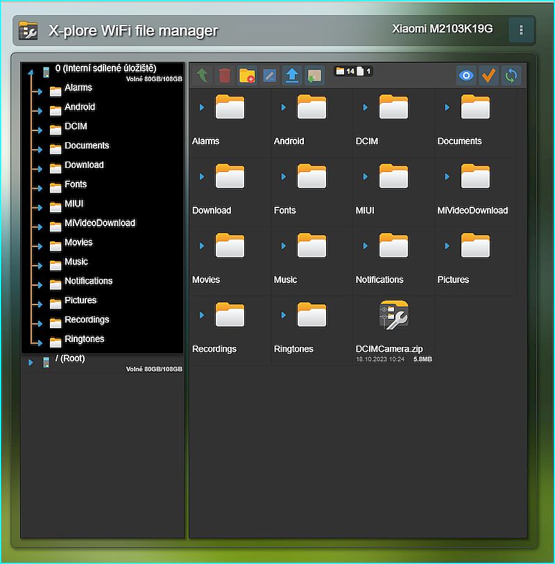Já používám v mobilu X-plore ve kterém spustím "sdílení souborů přes WiFi"