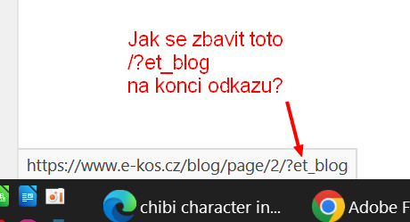 To tam je stále. Ale nejde o odkaz článku, nýbrž o procházení stránek (předchozí/další stránka), kdy funguje třeba https://www.e-kos.cz/blog/page2, ale něco tam přidává "/?et_blog" a to už nefunguje.