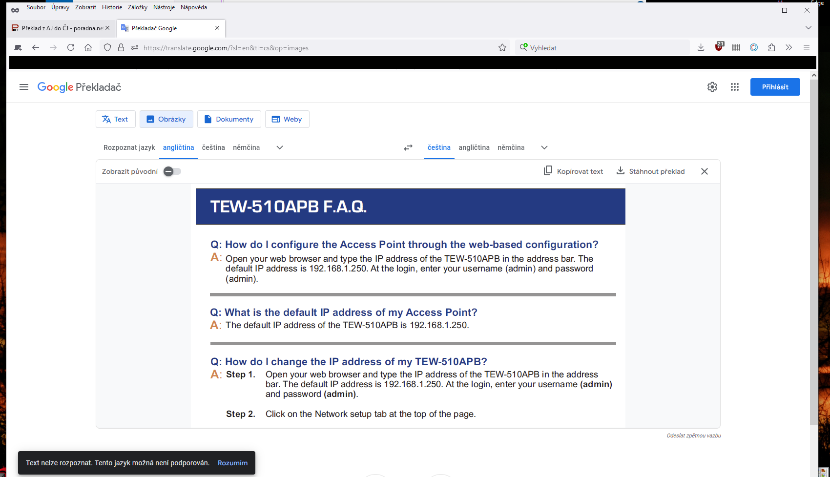 Mám na ploše PC text s obrázky ze skeneru / návod k obsluze / v AJ.Jak ho jednoduše přeložit do ČJ?