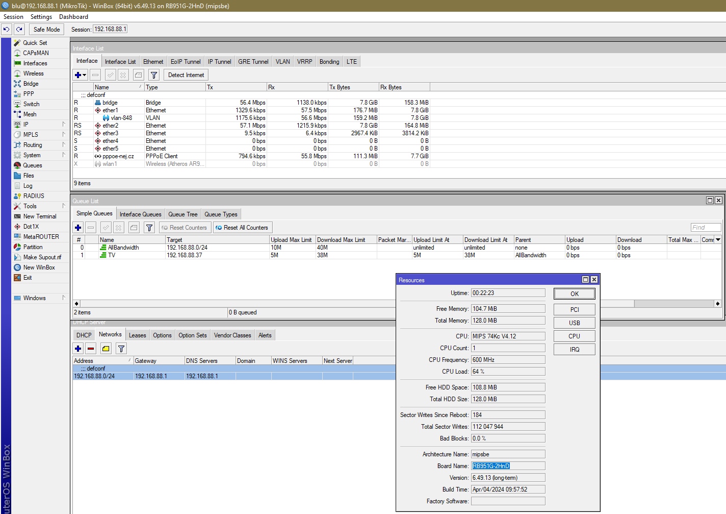 Dále jsem zkusil nastavit bandwidth pro tv podle skriptu zde: https://forum.mikrotik.com/viewtopic.php?t=133342