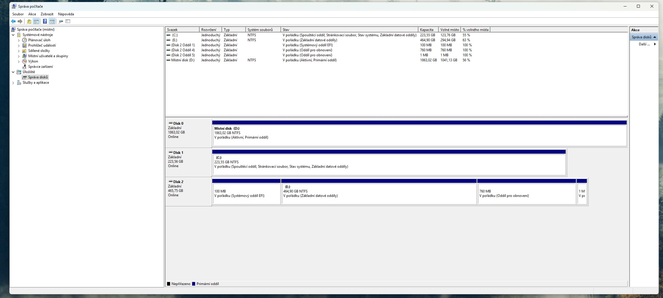 Poznámka k příloze: Disk 1 = Windows 11. Disk 2 = Windows 10.