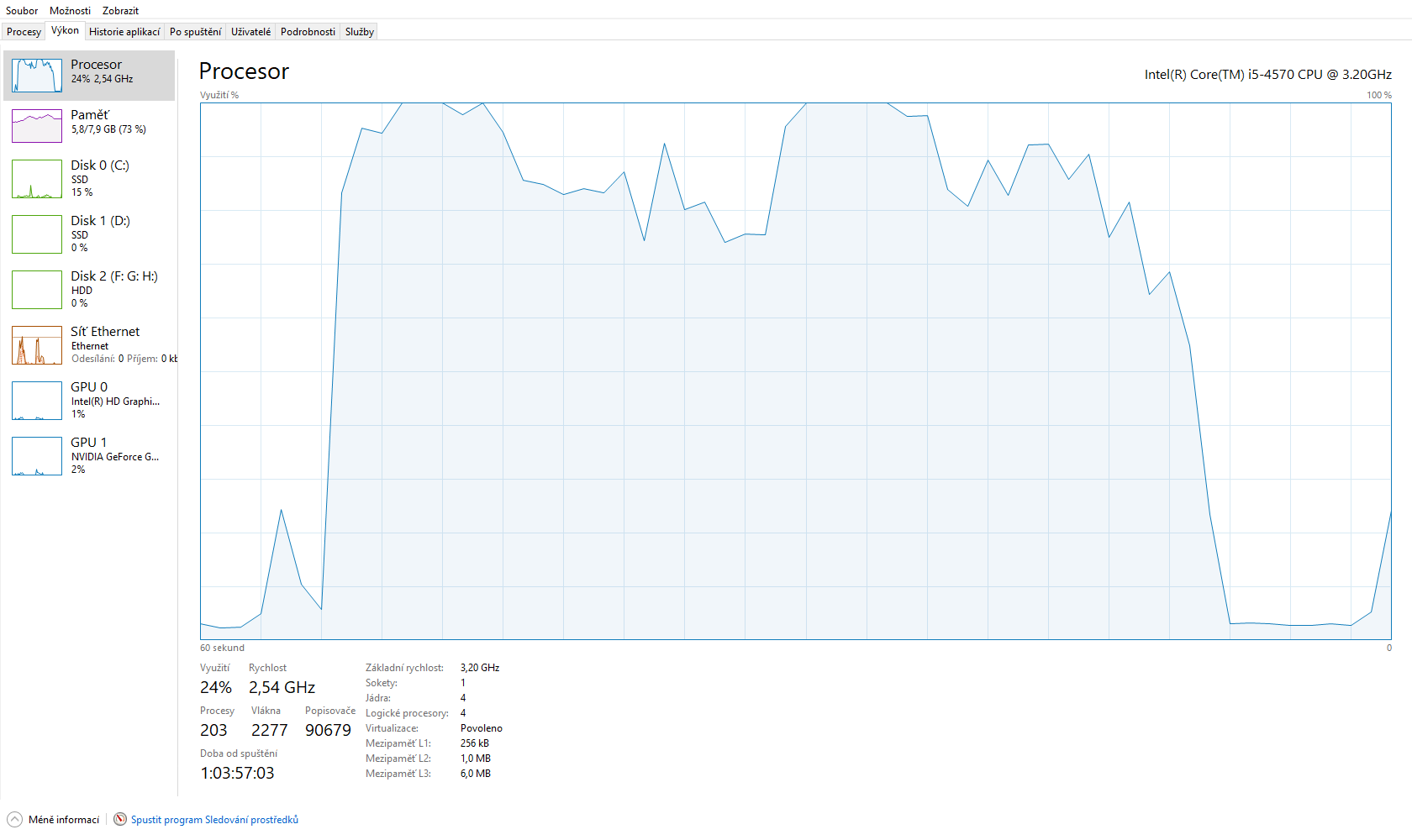 Zatížení procesoru prohlížečem