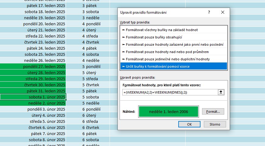 Dík, po krátkém boji jsem to nastavil podle toho vzorce (místo today->dnes;místo čárky->středník). Docela mě zajímalo, proč to nefunguje s tím nastaveným formátováním, když