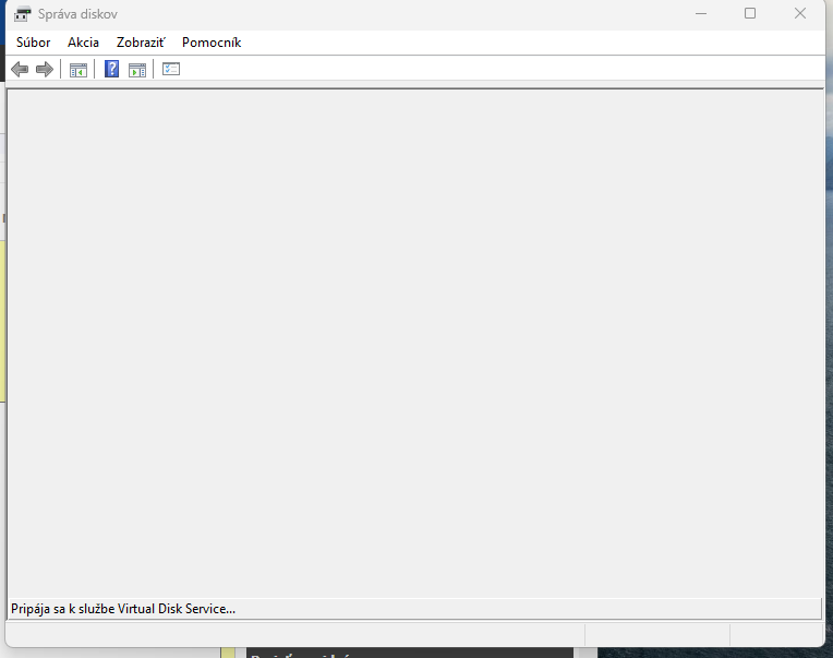 správu diskov mi nechce načítať, už pár minút tam píše pripája sa k virtual disk service a pripojený HDD bliká ale nič sa iné nedeje