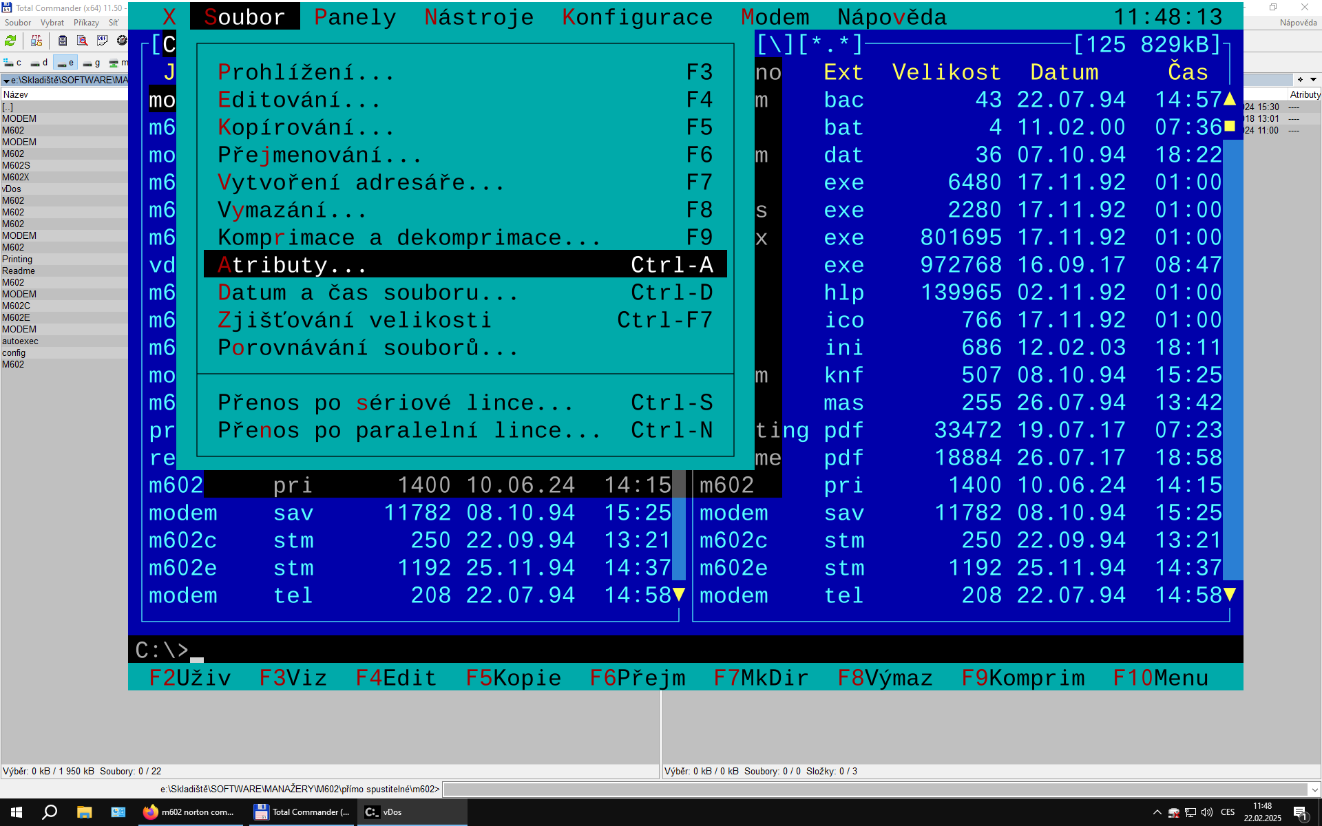 Dneska používám Altap Salamander 4.0. Výhodou je, že je česky a klávesové zkratky jsou úplně stejné jako bývaly právě v M602, navíc je zcela zdarma bez nějakých stupidních reklam jako kdysi bývaly v Total Commanderu. Taky je možnost si stáhnout spousty doplňků, které nejsou v základu. Hlavně je dvoupanelový, což mně vyhovuje nejvíc.