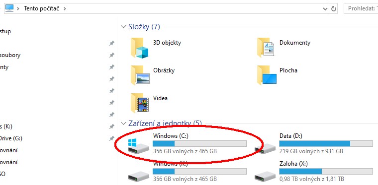Spusť Průzkumník (Win+E) a najdi disk C: a zkontroluj volné místo...