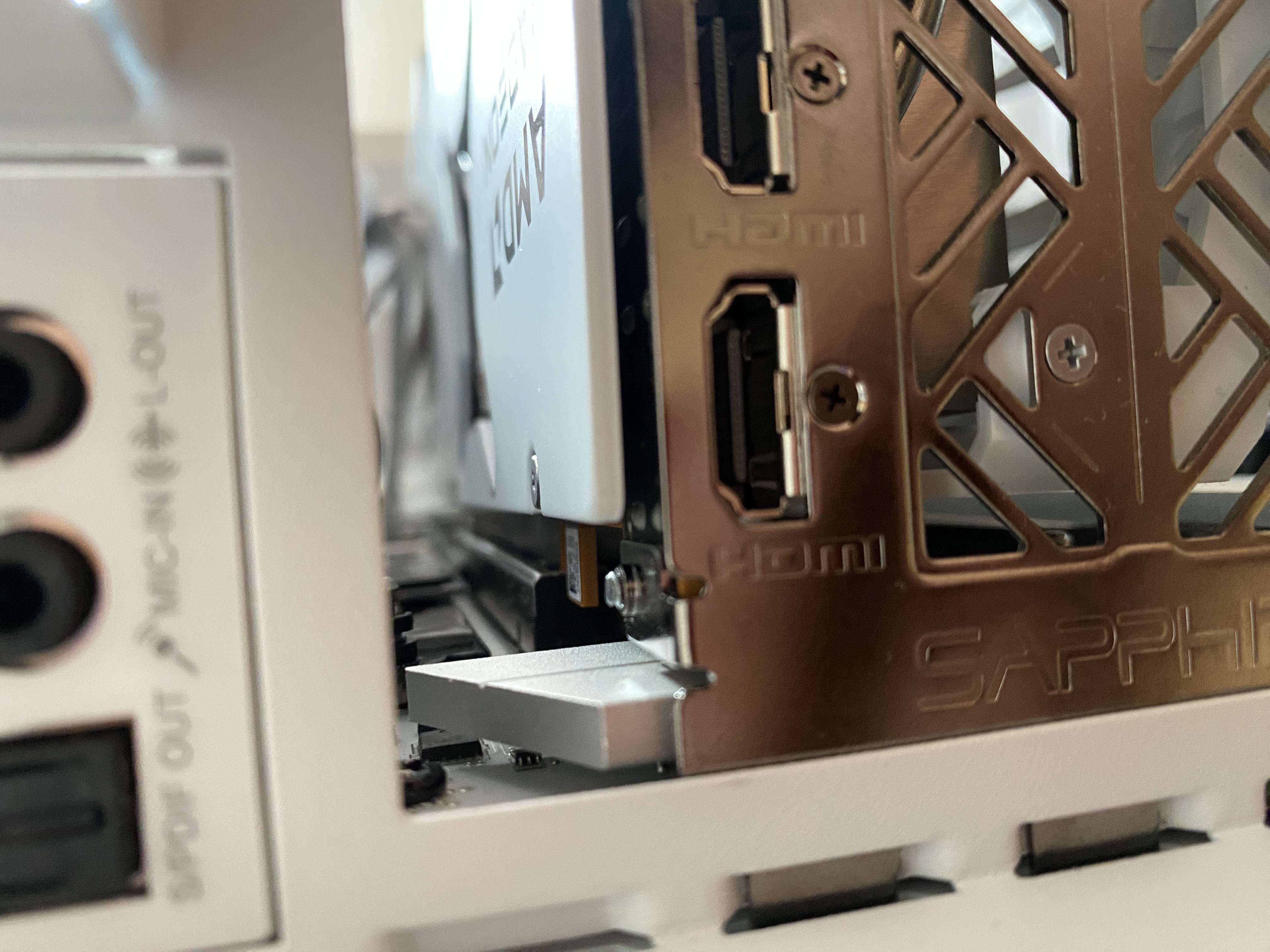 ked si si skladal PC, tak si daval podlozky pri upevnovani Maticnej dosky o Case ? mne to pripada ze ti tam chyba tak 2-4mm akurat, lebo ti bocny plech karty nedovoli uplne zasunutie... https://shorturl.at/QVhdi takto vypadaju tie sroby cca...mozu mat inu farbu