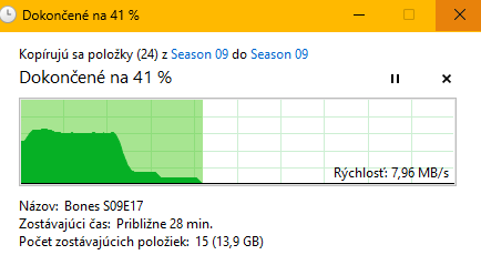 Velky pokles po nejake dobe zpravidla zpusobuje WIN ktery to zapisuje do vyrovnavaci pameti (z duvodu vykonu OS nezapisuje primo na USB, ale do tzv. vyrovnavaci pameti), kuprikladu pokud zdrojovy PC disk pracuje rychleji, nez cilovy USB disk zvladne.