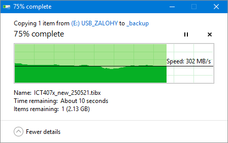 kopiroval jsem tento tyden nejakou cca 20gb zalohu rychlosti pod 300gbyte/s, samozrejme v tom nebyl levny adata.
