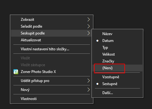 WIn10 prieskumnik - ako zrusit trvalo zoskupovanie